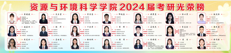资源与环境科学学院以习近平新时代中国特色社会主义思想为指导,深入学习贯彻党的二十大精神,落实立德树人根本任务,教育引导学生厚植家国情怀、勇担时代重任,在担当中历练、在历练中成长、在成长中升华,以青春“小我”书写强国“大我”。本届毕业生中,共计46人加入中国共产党,其中优秀毕业生42人。学院注重抓学风、促教风,形成了以考研带动学风建设的良好学习氛围,2024届毕业生中有21人考取国内高校硕士研究生,报考录取率30%。