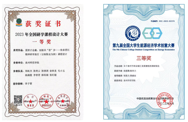 本届学生多次在省级以上专业竞赛中获奖,先后荣获第八届中国国际“互联网+”大学生创新创业大赛铜奖,第十八届“挑战杯”全国大学生课外学术科技作品竞赛二等奖,第十届全国科学教育专业师范生教学技能创新大赛三等奖,第九届全国大学生能源经济学术创意大赛三等奖,第十六届全国大学生节能减排社会实践与科技竞赛三等奖,第八届全国大学生生命科学竞赛三等奖,2023年全国研学课程设计大赛一等奖,第八届OCALE全国跨境电商创新创业能力大赛特等奖等奖项。