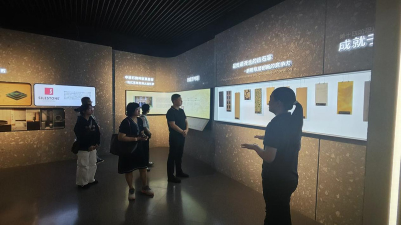 李子蓉院长一行依次参观了魔石家具工厂、石材加工厂、朴一村和埕边村。深入了解了再生石的发展历程、产品加工流程、石粉的制作环境和流程、固废资源化利用情况,并在参观中进行了取样调查。