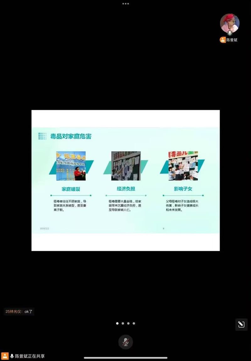 为进一步加强毕业生禁毒宣传教育,提升即将步入社会的2025届毕业生的识毒、防毒、拒毒意识和能力,筑牢思想防线,共建无毒人生,近日,资环学院通过线上会议平台组织全体2025届毕业班学生开展了禁毒教育主题班会。