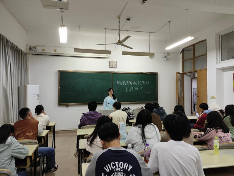 12月1日晚,我院以“宪法伴我行,法治在心中”为主题,组织开展了形式多样的主题班会。班会向同学们讲解了宪法的基本内容、发展历程以及宪法与大学生日常生活的密切联系。随后,同学们围绕“如何树立宪法意识”“大学生应如何维护宪法权威”等话题展开热烈讨论。通过主题班会,同学们进一步提高了法治素养,培养了思辨能力,为今后的学习和生活奠定了坚实的法治基础。